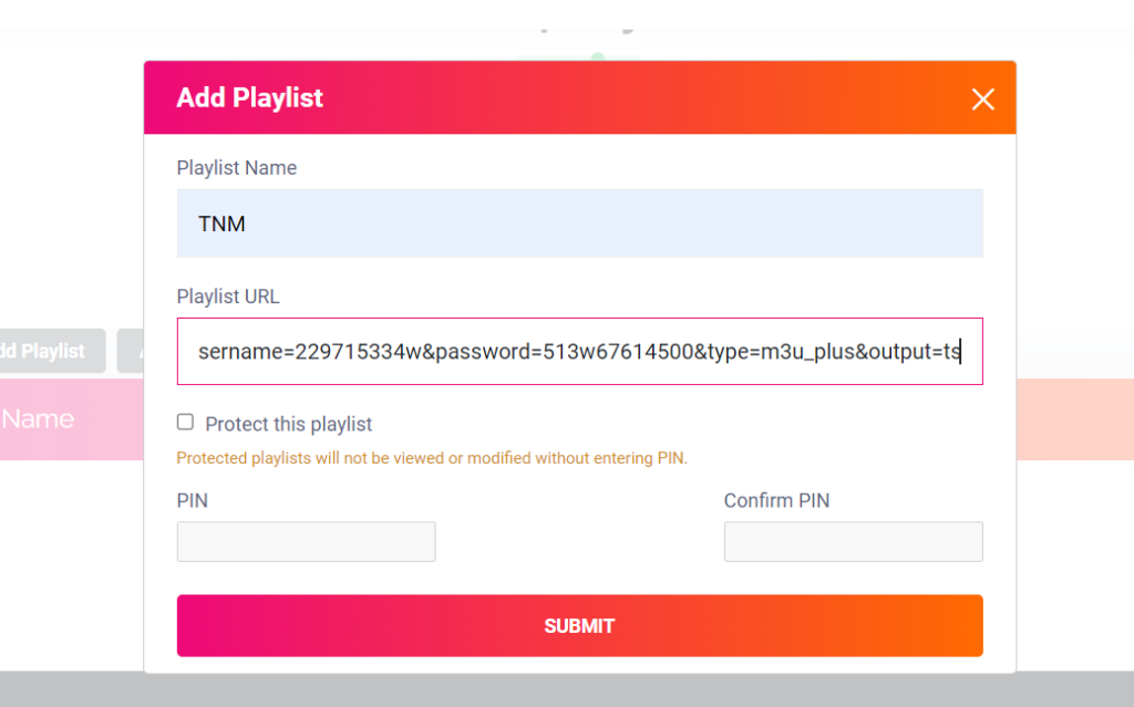 Playlist URL: Link M3U recebido no whats app